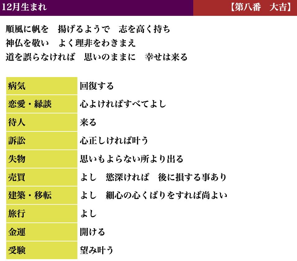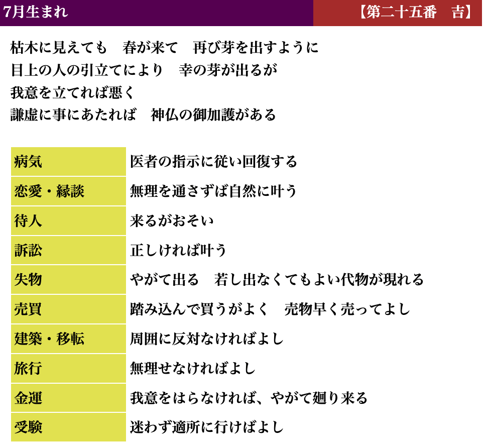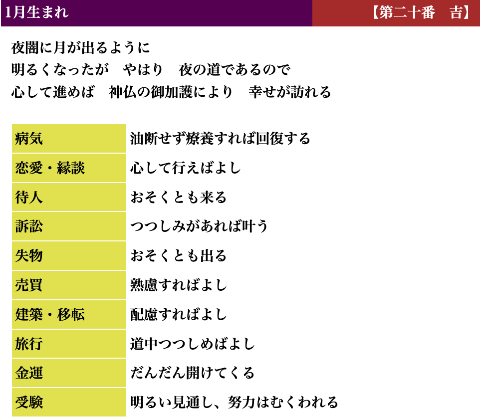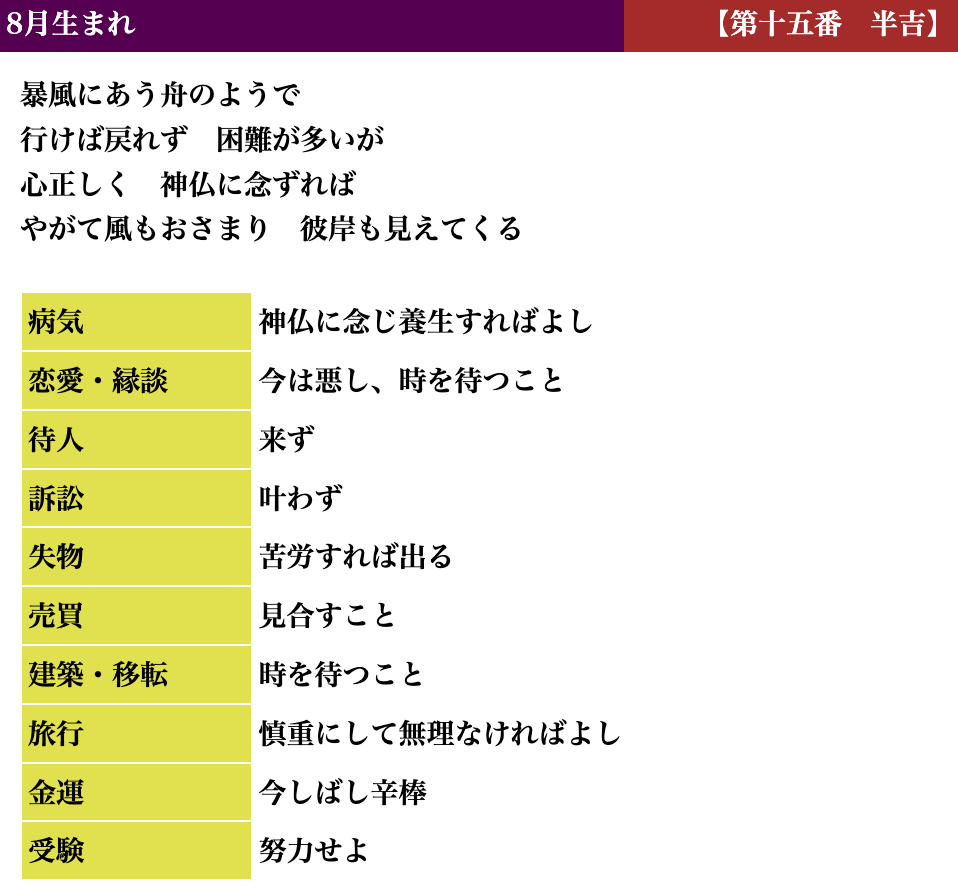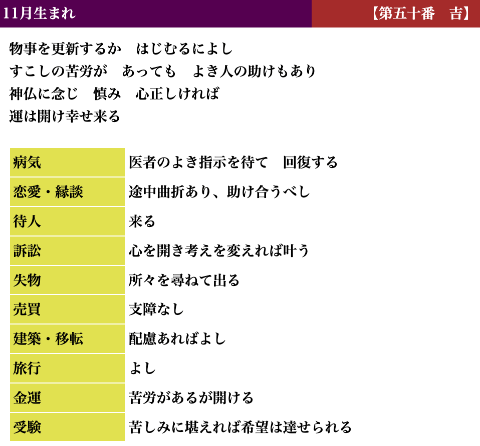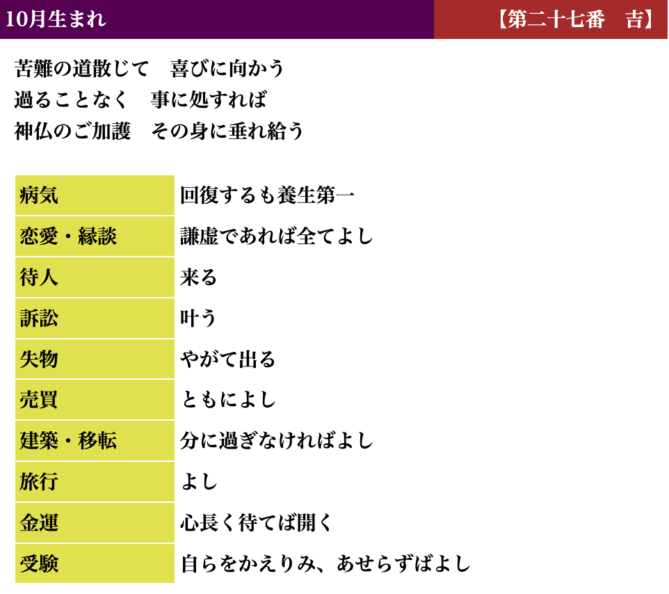 生活しているとよい時、悪い時と波がありますが、吉凶もそれと同じで、凶を受け取られても「注意深く生活すればいい」「これからきっと上向きになる」とお考えいただければと思います。