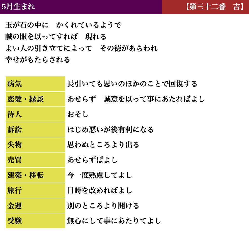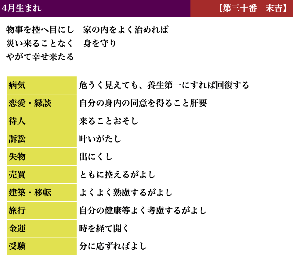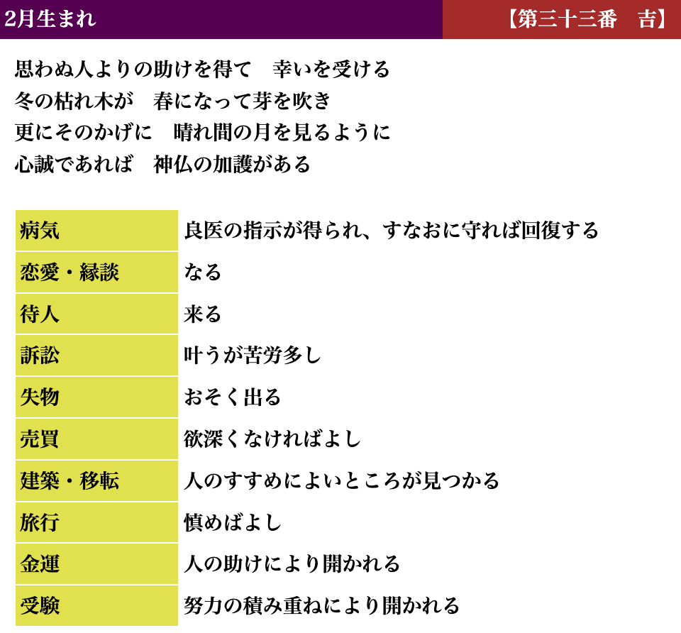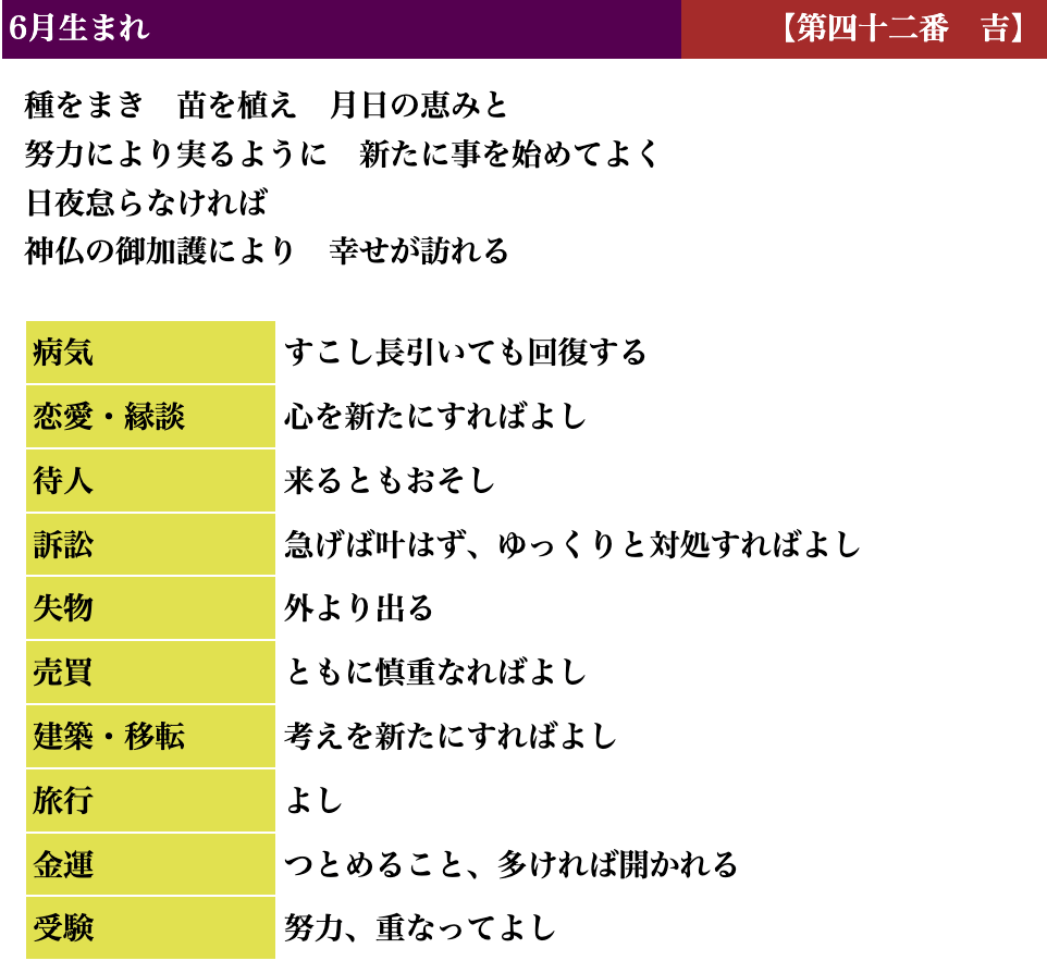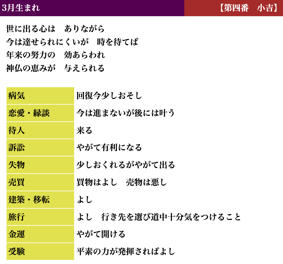生活しているとよい時、悪い時と波がありますが、吉凶もそれと同じで、凶を受け取られても「注意深く生活すればいい」「これからきっと上向きになる」とお考えいただければと思います。